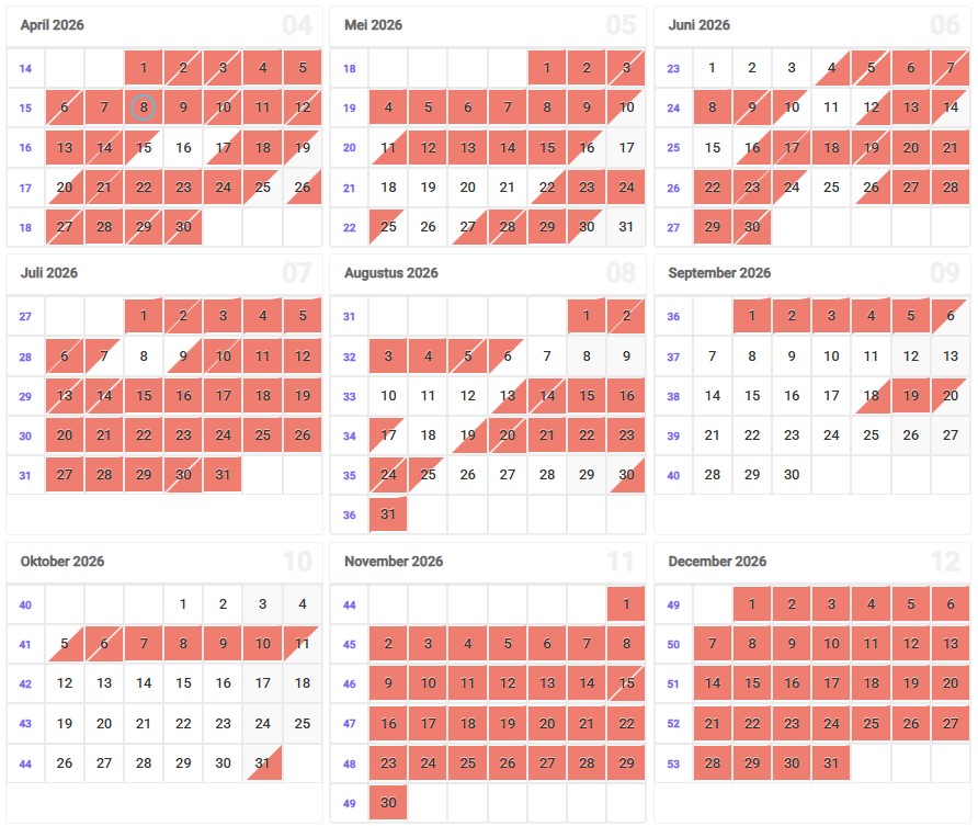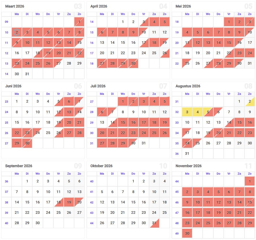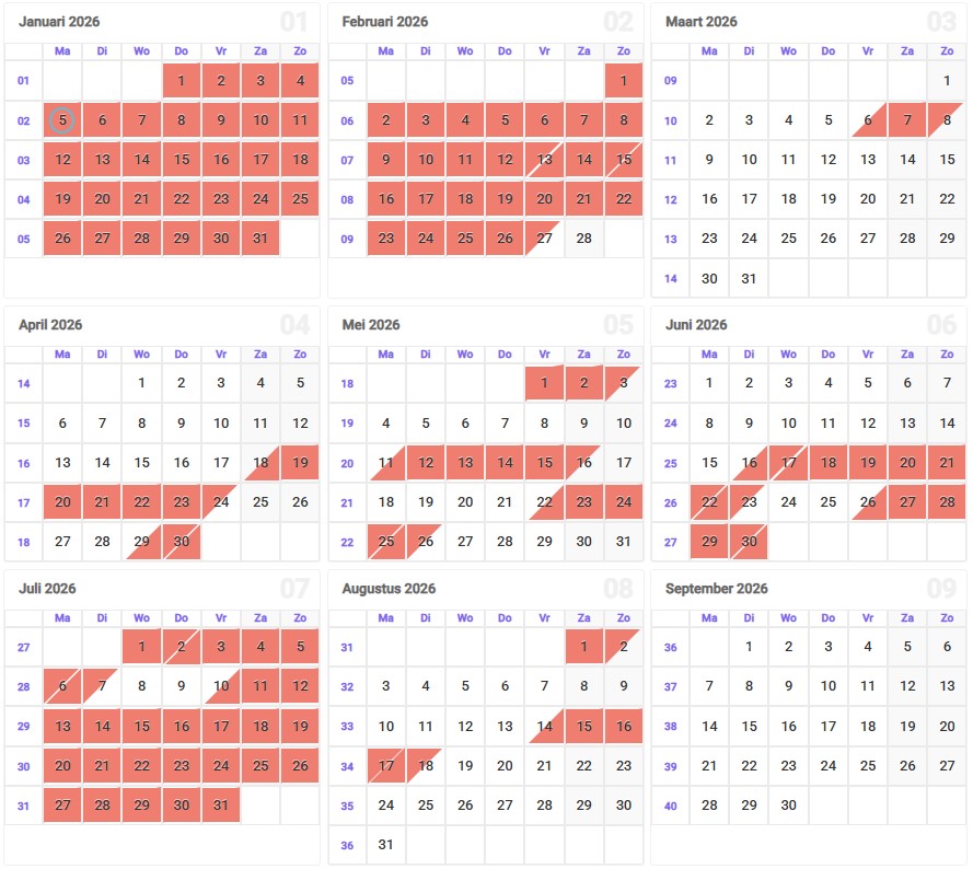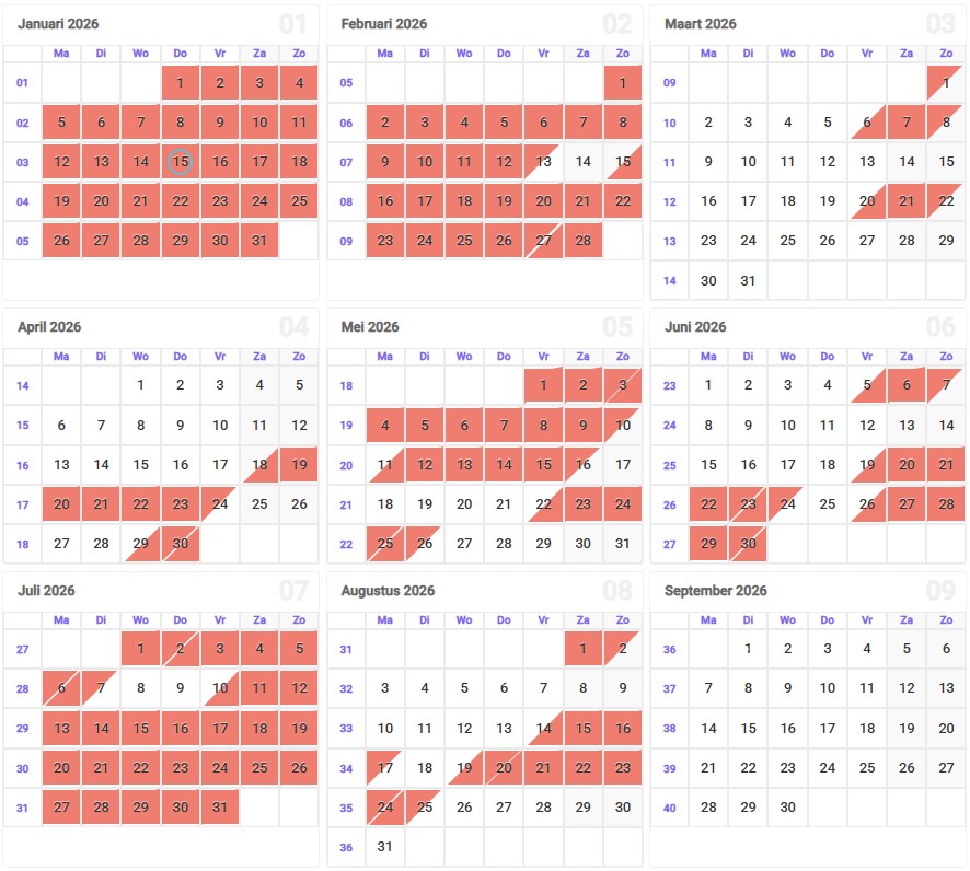 ** paasvakantie: van vrijdag 3 april 2026 tem zondag 19 april 2026